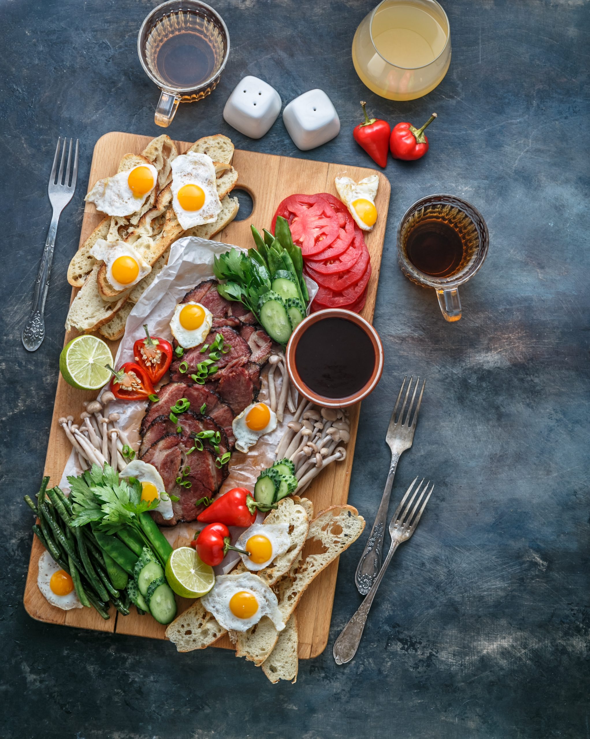 Instead of serving breakfast on individual plates, create a stunning breakfast board using a large wooden serving platter. Arrange a variety of breakfast foods, such as sliced fruits, cheeses, cured meats, and pastries, alongside our stylish porcelain bowls filled with yogurt and granola. Finish off the presentation with a selection of our premium stainless-steel cutlery for an Instagram-worthy breakfast spread.