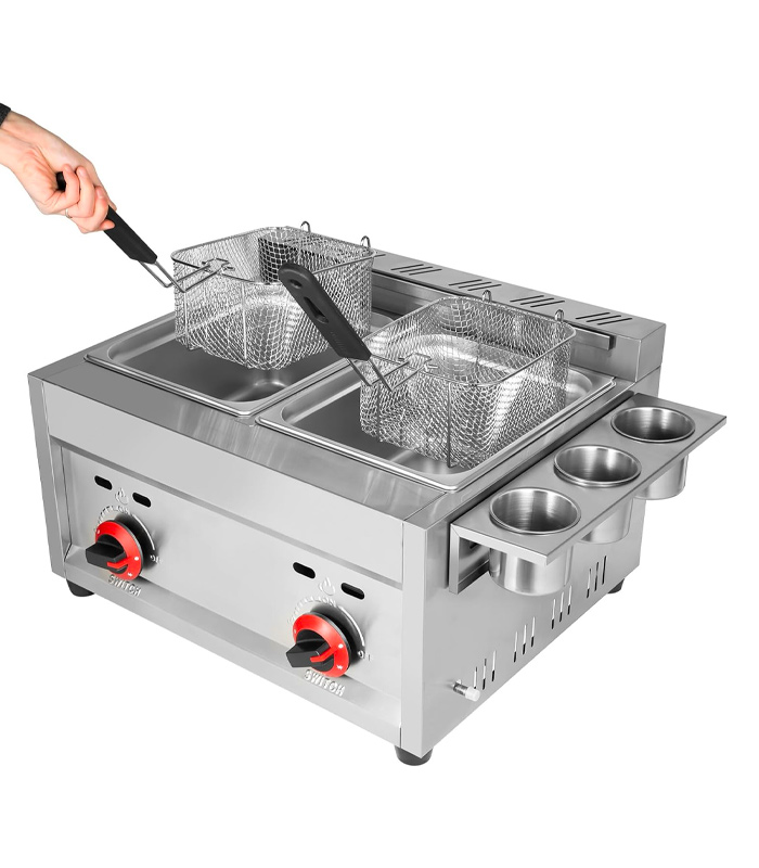 Commercial Gas Deep Fryer 12L Countertop Stainless Steel Dual Tank