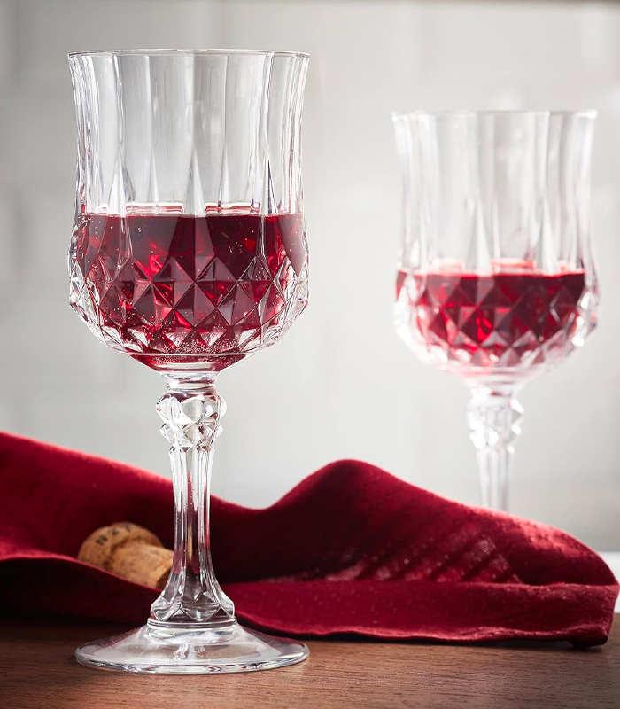 - DESIGNED TO ENHANCE TASTING: The fine drink ensures a perfect tasting. Thanks to its convex shape, the bottom of the glass allows a perfect oxygenation of the wine. The upper concave part of the glass offers a large aromatic chamber that releases the aromatic bouquet for an immediate result. The tight neck helps to concentrate the aromas at the top of the glass. The flat bowl of the stemmed glasses prevents water retention in washing and the appearance of white marks.