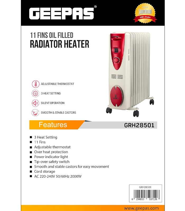 - 3 HEAT SETTING - Featuring 13 heating fins, 2900W output, and an adjustable thermostat, your room will be quickly heated up so you are at a temperature that’s comfortable for you.