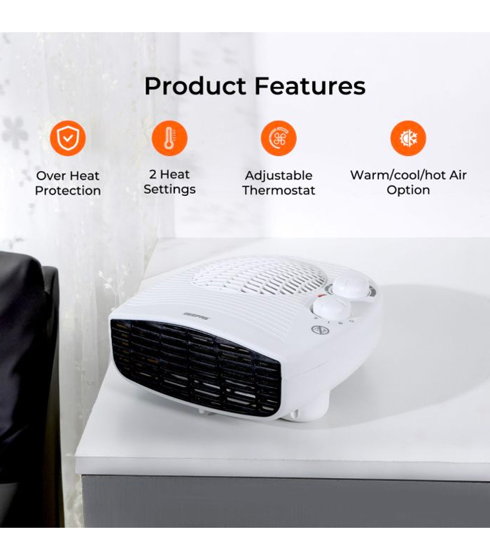 - This Geepas Fan Heater has a built-in thermal safety cut-off and also comes with overheating protection function