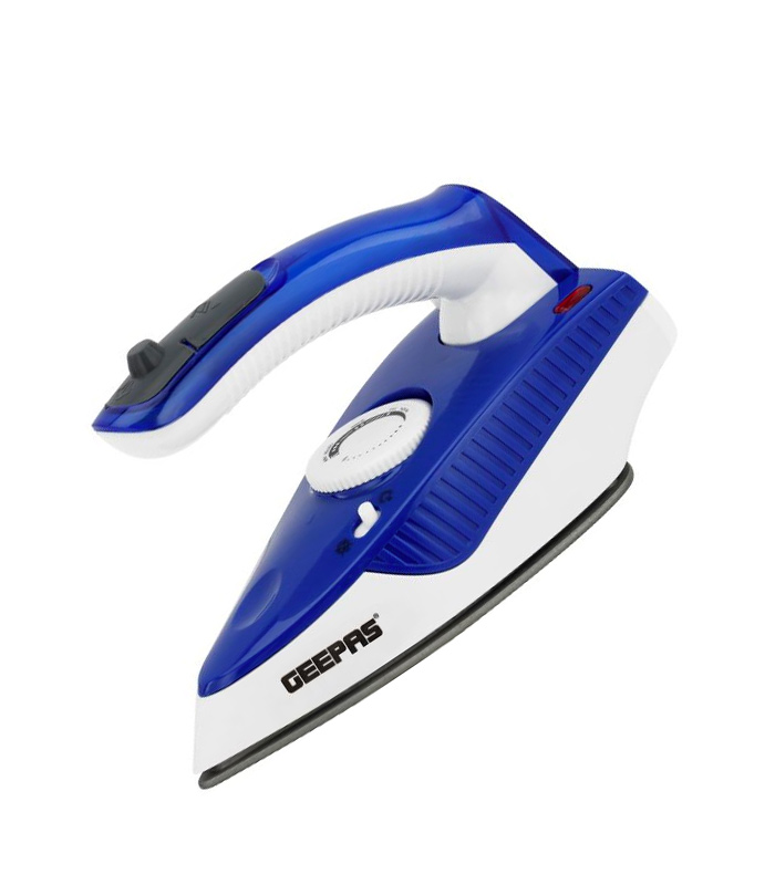 - GEEPAS STEAM SHOT TRAVEL IRON, FOLDABLE HANDLE – The Geepas 800W travel iron is compact and lightweight with a foldable handle so it will easily fit in your luggage wherever you may be traveling. This iron features your water spray and to help remove those stubborn creases for ironing across all fabrics very easily.