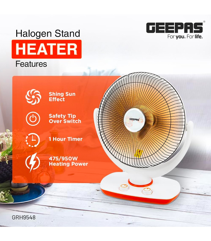 Geepas Halogen Stand Heater, 1000 Watt – GRH9548