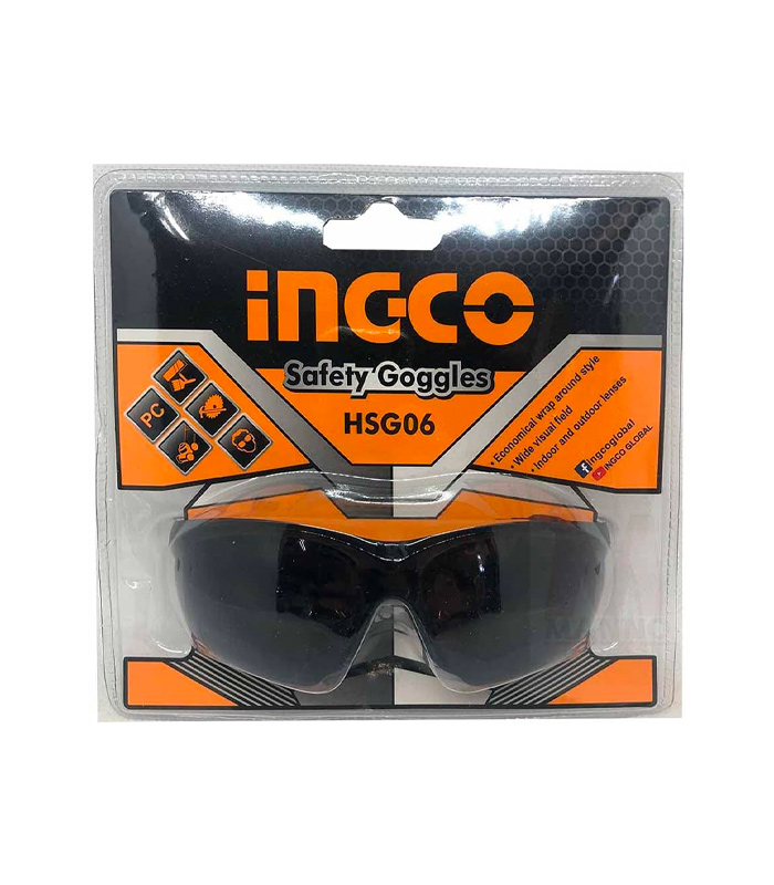 Ingco HSG06 Polycarbonate Safety Goggle, Dark