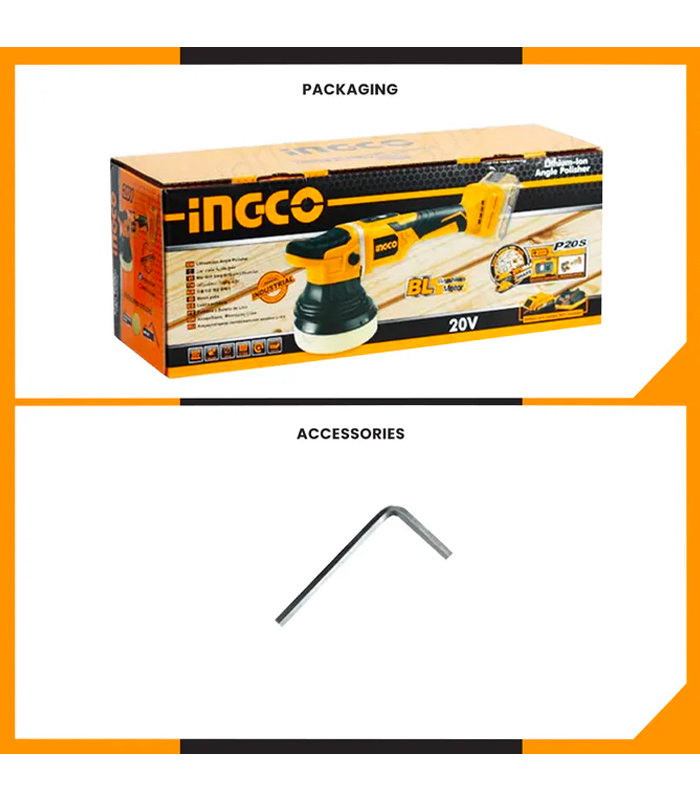 - Ingco Tools 20V Lithium-Ion Cordless Angle Polisher BL Motor