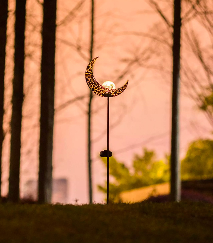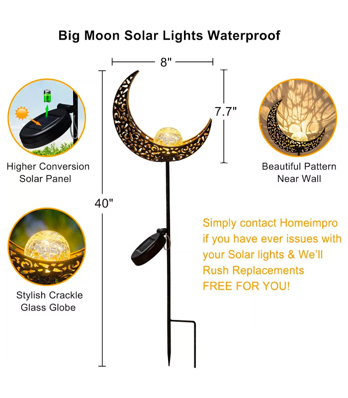 Moon Solar Garden Lights Outdoor Stakes Waterproof Crackle Glass Metal Lights