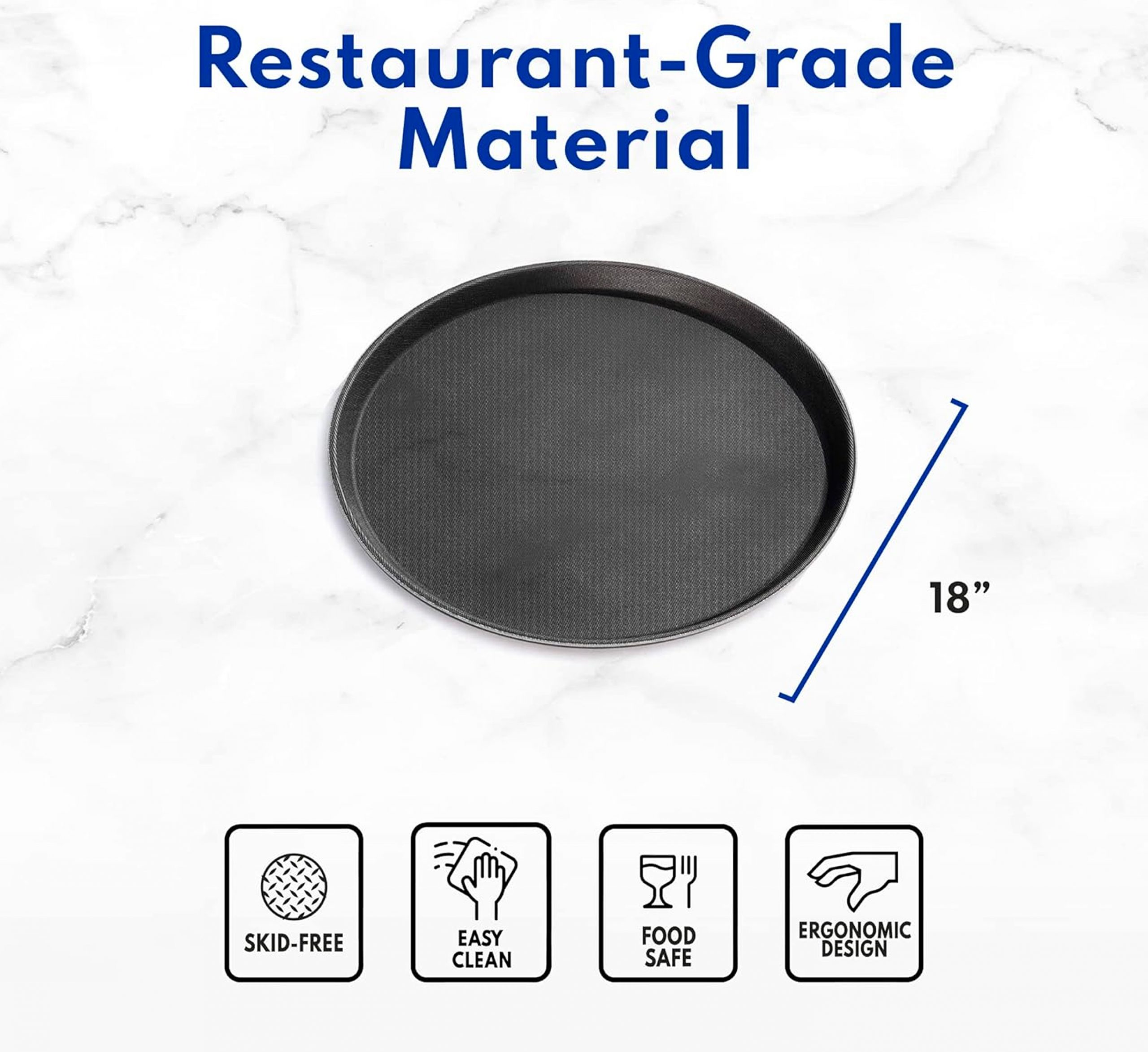 - NON-SKID LINER – Features a rubbery, absorbant, non-skid finish on its surface for secure transport of dishes or glassware from kitchen to table, either in your restaurant or your home.