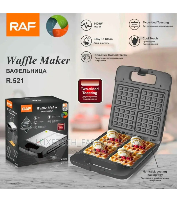 RAF 4 Slices Electric Waffle Maker R-521 – Black/silver