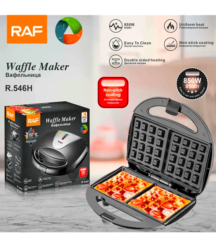 RAF Waffle Maker, Black, 850 Watt, Model R.546H