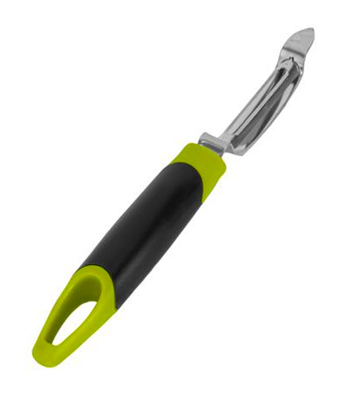 Comes in steel which is a strong and sturdy metal. It provides durability to the tool and makes it suitable for rough use. And has sharp blades that help to slice off just the skins of the vegetables and fruits with ease and efficiency.